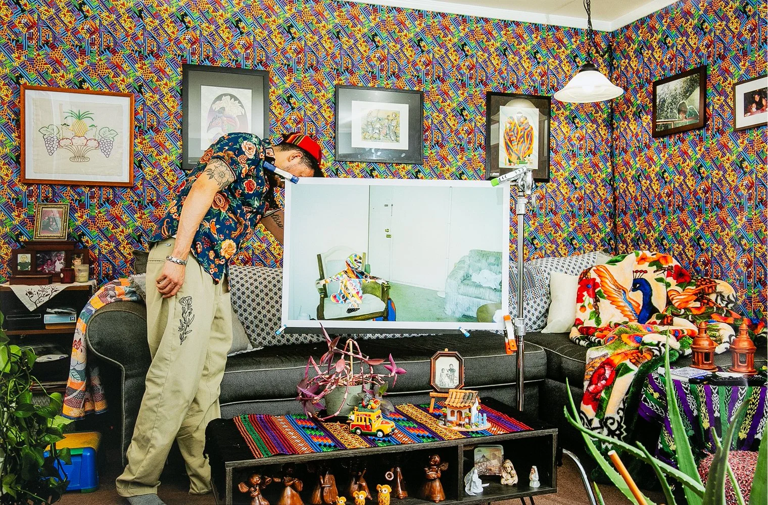 Dominique Muñoz stages portraits inside childhood homes, using patterned blankets to explore family, queerness, and place.